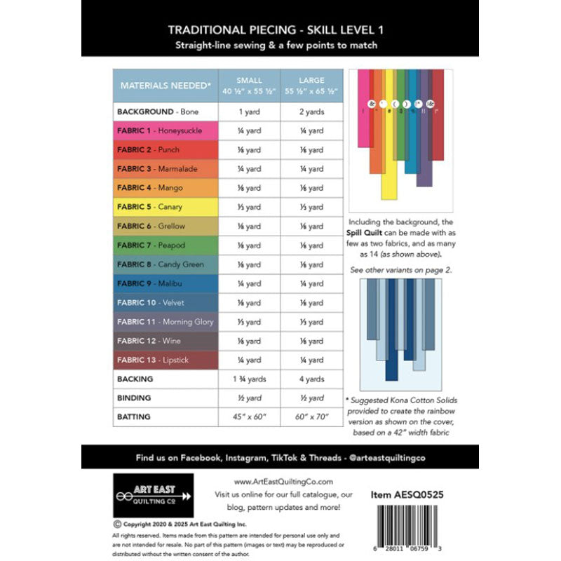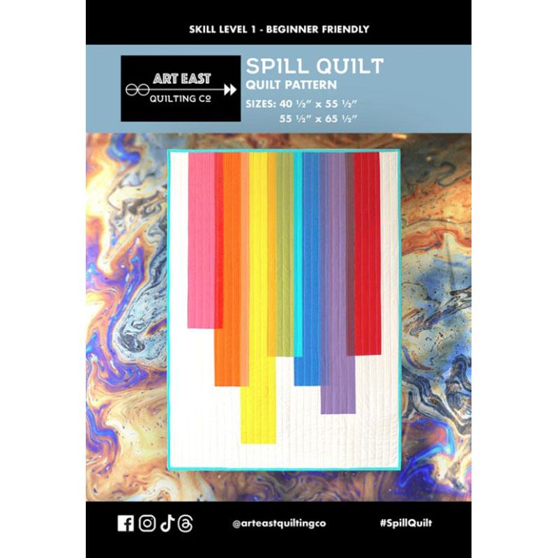 The Spill Quilt pattern offers complete instructions for two quilt sizes: 40 ½in x 55 ½in (as shown on the cover) or 55 ½in x 65 ½in. This project utilizes conventional piecing techniques. This quilt contains no diagonal piecing, making it suitable for the beginner quilter. The pattern emphasizes the interplay of transparency and color, creating a dynamic visual effect.